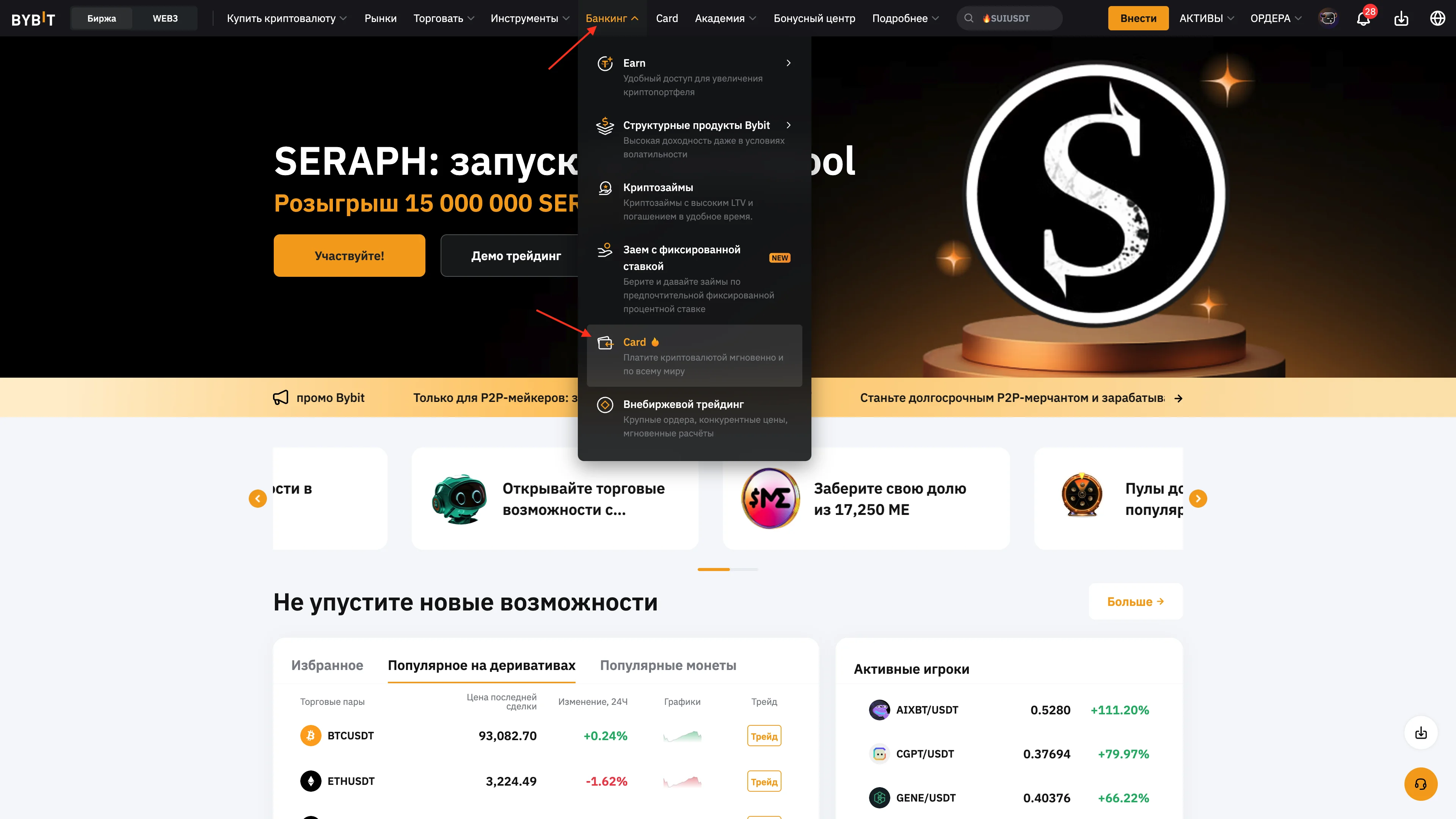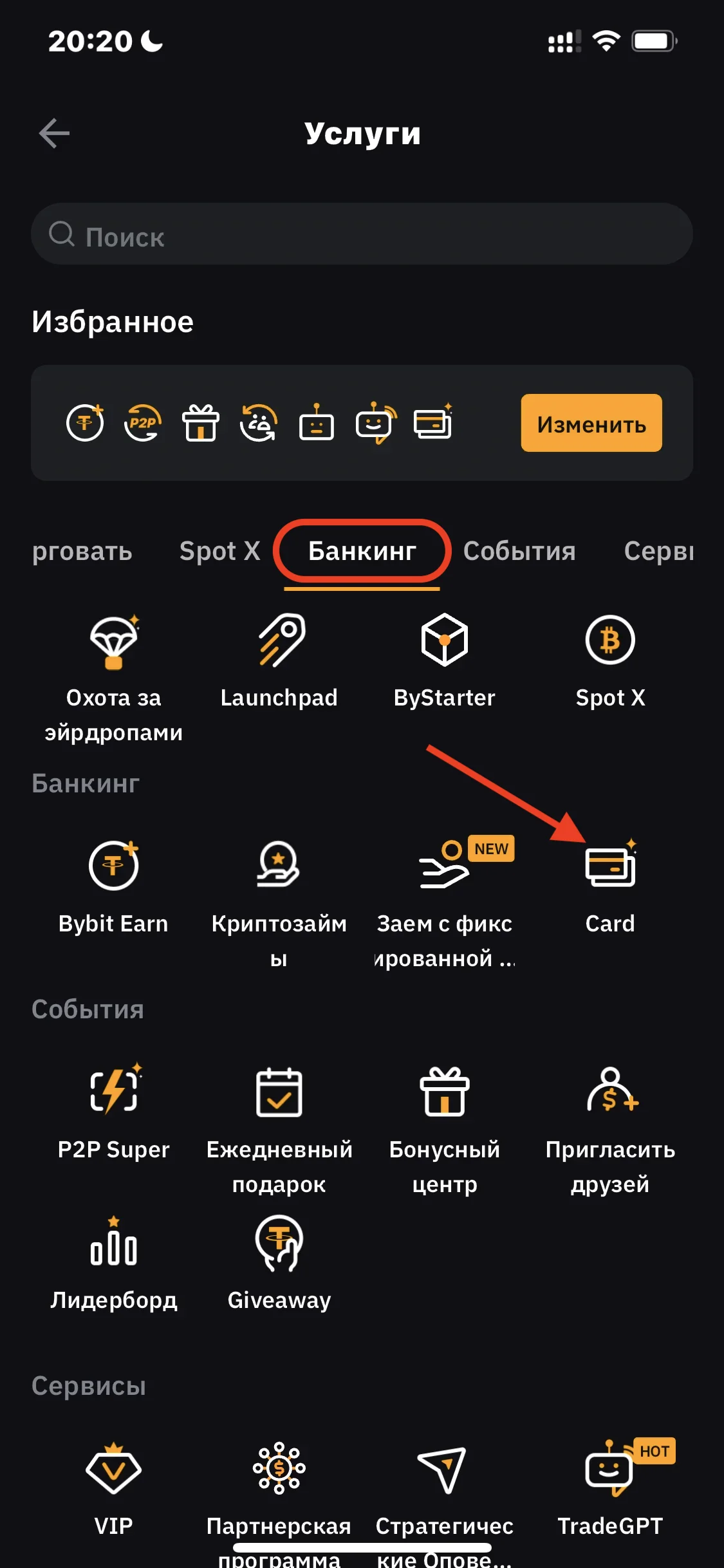 - Перейдите в раздел “Банкинг” на верхней панели навигации сайта Bybit.