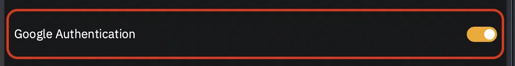 - Найдите пункт “Google Authentication” и активируйте его, передвинув флажок в положение вкл.